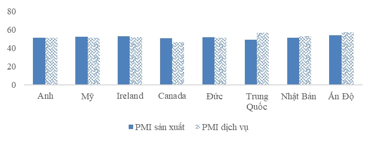 Diễn biến chỉ số PMI sản xuất, dịch vụ của một số nền kinh tế